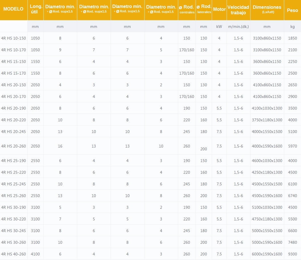 - Dos rodillos laterales, que permiten una doble sujeción (los rodillos inferior y laterales presentan un sistema de balance que garantiza un perfecto paralelismo y una producción de gran calidad).